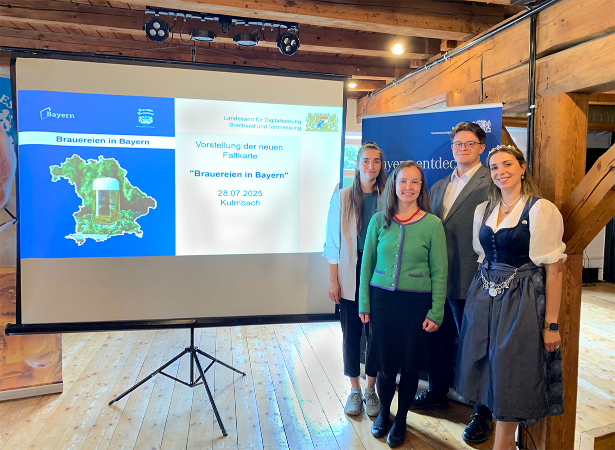 Mit seinen rund 600 Brauereien gehört Bayern zu den vielfältigsten und traditionsreichsten Bierlandschaften der Welt. Jetzt hat der Bayerische Brauerbund e.V. in Kooperation mit dem Landesamt für Digitalisierung, Breitband und Vermessung (LDBV) die Sonderkarte "Brauereien in Bayern" im Maßstab 1:500 000 aktualisiert und neu herausgegeben. Die Sonderkarte wurde 2021 in Erstauflage von Geomatik-Auszubildenden des LDBV erstellt.